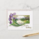 Antique Birthday Post Card circa 1916 features a peaceful lake with a purple iris border. The greeting reads simply "A Joyous Birthday." This design was created from an actual antique postcard from the artist's personal collection. it has been scanned, digitally restored and resized to fit a modern sized postcard. The reverse of the card is also authentic, but unfortunately it will cost you more than a penny to post this card! Current postcard rates apply. #20140014
