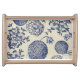 Antique Blue Toile Botanical Flower Print Floral Serving Tray