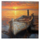 An antique wooden boat rests by the dock, draped in weathered fishing nets that tell stories of past voyages. The rustic charm of aged wood and tangled ropes creates a nostalgic maritime scene full of character and history.