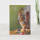 This card features a great Victorian image of a bunny posted at a guard house with a gun and a pile of eggs. Very charming!