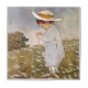 Antique Child Picking Daisies Flowers Ceramic Tile