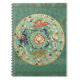 Vintage Chinese Green Nature Design Depicting the Land, Sea, and Air with Running Horses - This classic Chinese design shows horses running around the blueish green intricate design with air, land, and sea.