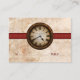 This Antique Clock Wedding Place Card features a vintage timepiece prominently centered on top of a metal ball chain and sleek dark red striped border. The distressed look of the grungy paper texture background completes the antiqued feel of this unique escort card. This offbeat wedding place card is perfect for a vintage or steampunk inspired wedding. Space is provided on this design to write in the names and table numbers where each of your guests will be seated. Click on "Customize It" to find additional options to personalize this design.
