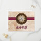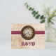 This Antique Clock Wedding Response Postcard features a vintage timepiece prominently centered on top of a metal ball chain and sleek fuchsia pink striped border. The distressed look of the grungy paper texture background completes the antiqued feel of this unique RSVP postcard. This offbeat wedding response postcard is perfect for a vintage or steampunk inspired wedding. Easy to customize, simply add your wedding details in the text fields provided. Click on "Customize It" to find additional options to personalize this design.