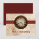 This Antique Clock Wedding Table Number Postcard features a vintage timepiece prominently centered on top of a metal ball chain and sleek dark red striped border. The distressed look of the grungy paper texture background completes the antiqued feel of this unique table card. This offbeat wedding table number postcard is perfect for a vintage or steampunk inspired wedding. Easy to customize, simply add your wedding details in the text fields provided. Click on "Customize It" to find additional options to personalize this design.
