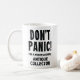 A charming white mug featuring the phrase 'Don't Panic! I'm A Professional Antique Collector.' This mug is perfect for those who appreciate the beauty of vintage items and often find themselves in the world of collectibles. It's an ideal office mug for showcasing your passion during work hours or as a lighthearted team gift for birthdays and promotions.