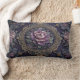 Antique Design Dark Academia Lumbar Pillow. © Dark Heart Desires. This Dark Academia lumbar pillow has an antique design in purples and gold and black.