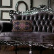 Antique Design Dark Academia Lumbar Pillow. © Dark Heart Desires. This Dark Academia lumbar pillow has an antique design in purples and gold and black.