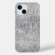 Phone case featuring an antique Egyptian hieroglyphics script design in grey and chalk colors.