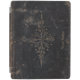 Vintage antique faded gold leaf fleur-de-lis type ornate design on weathered, crackled faux leather book cover. Add your name or monogram in matching gold color for a unique, personalized gift for the vintage art lover in your life.