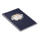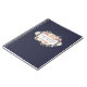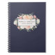 Keep track of your appointments, customer data and more with our chic floral notebook. Design features a rich midnight navy blue background with your name and/or business name on a watercolor floral badge with clusters of blush pink, peach and cream rose and peony flowers. Perfect for salons, stylists, makeup artists or any business.