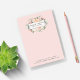 Elegant floral notes feature your name and/or business name framed by a border of lush watercolor flowers in blush pink, sage green, peach and cream, on a pastel blush pink background. Add two lines of additional information or contact details along the bottom.
