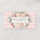 Elegant floral appointment reminder cards feature your name and/or business name framed by a border of lush watercolor flowers in blush pink, sage green, peach and cream, on a tone on tone blush pink stripe background. Add your cancelation policy, custom heading, and contact information to the back. Includes space to write in your customer's next appointment date and time.