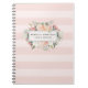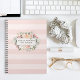 Keep track of your appointments, customer data and more with our chic floral notebook. Design features a tone on tone pastel blush pink striped background with your name and/or business name on a watercolor floral badge with clusters of blush pink, peach and cream rose and peony flowers. Perfect for salons, stylists, makeup artists or any business.