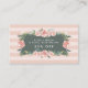 Encourage your customers and clients to share the love with these elegant referral business cards. Front features your referral offer in white on hunter green, framed by a border of lush watercolor flowers in blush pink, sage green, peach and cream. A tone on tone pale blush pink stripe background completes the look. Add your contact information and referral terms to the reverse side using the template fields provided. Includes space for the referrer's and new customer's names.