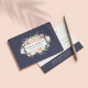 Elegant floral gift certificate design displays your name and/or business name framed by a watercolor floral logo in blush pink, sage green and cream on a contrasting deep midnight navy blue background. Add your desired gift certificate wording and business contact information on the reverse side. A chic and elegant choice for salons, makeup artists, hair stylists and more.