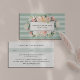 Elegant floral appointment reminder cards feature your name and/or business name framed by a border of lush watercolor flowers in blush pink, sage green, peach and cream, on a tone on tone sage green stripe background. Add your cancellation policy, custom heading, and contact information to the back. Includes space to write in your customer's next appointment date and time.