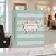 Keep track of your product inventory, appointments, customer data and more with our chic beauty business mini binder. Design features a tone on tone sage green striped background with your name and/or business name on a watercolor floral badge with clusters of blush pink, peach and cream rose and peony flowers. Personalize the contrasting sage green spine with off-black lettering. Perfect for salons, stylists, makeup artists or any business.