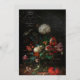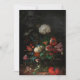 Historic Dutch floral oil painting by Jan Davidsz de Heem ca 1660 with french script and subtle damask on aged distressed background.