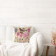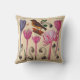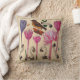 Antique French Botanical Floral Print with Bird Throw Pillow