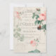 Lovely pink Redouté roses with French perfume advertising text, handwritten receipt and postal element on distressed parchment background.