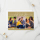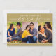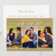 A warm and refined save the date featuring a rich antique gold banner with elegant white date numerals and names, above a three-photo collage showcasing your favorite engagement photos. The lustrous golden palette creates a timeless, luxurious aesthetic perfect for formal, ballroom, or classic wedding styles. The coordinating back panel includes space for wedding details and your website. All text and photos are fully customizable.