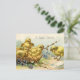 Old Antique Vintage Happy Easter wish greetings card with chicks hatched from eggs and holding spring flower branches. Text: A joyous Easter.
