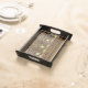 This is a well made, sturdy wooden tray with a flawless black finish and lovely map on the tray surface. It is both vintage & modern at the same time. Looks exactly like the photo; does not disappoint. So nice to find something of quality individually made and not the mass-produced 'shabby chic' merchandise seen in stores. I am so pleased to be able to give this to my college-age niece for her birthday. This can be used as a tray to hold jewelry or toiletries, or hung on the wall as art. The map surface is sealed (it is slightly shiny) so would be moisture resistant. It is well worth the asking price but I was able to apply a sale code as well. Very happy with my purchase. Map is crisp & clear and sealed with a water-resitant finish.