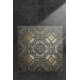 This richly detailed ceramic tile design features an intricate, faux bas-relief geometric motif inspired by antique metalwork. A striking mix of aged iron tones and warm antique gold gives the pattern a sophisticated, time-worn elegance, with raised contours that create beautiful depth and shadow. The repeating star and floral-inspired shapes bring a sense of symmetry and artistry, making this an eye-catching choice for collectors and décor lovers alike. Search ID1227 to see other metallic geometric designs in this series. Note: design adapted from generative content.