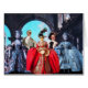 Expressive, whimsical elegant ancient Venetian puppets from !700 , vibrant gorgeous red blue costumes, colorful ,artistic Venetian masks with peacock feathers and gold purple floral fantasy, Original Digital Collage and Graphic Design by Bulgan Lumini - Baldesign3d (c)
