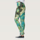 ANTIQUE JAPANESE FLOWERS Aqua Blue Green Floral Leggings