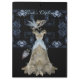 Fractal render manipulation and digital painting work. Silhouette of a victorian woman in a lace dress and hat with blue feather and bow accents with a matching parasol. Background is black with lacy blue accents. Just change the text or click on the "Customize it!" button for more design options. Artwork by Karlajkitty