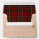 Antique looking wedding invitation envelope done in a old antique looking paper, with the colorful traditional red, green, blue, white, and yellow Royal Stewart tartan pattern, on the inside of the envelope and as a thin border, on the back flap. Black custom text return address, on the back flap, is ready to personalize. Perfect addition to our Royal Stewart plaid thank you cards.