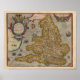 Antique Map of England from Ortelius 1573 in color with decorative elements. Looks great matted and framed.