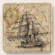 Antique Old General France Map & Ship Lithograph Beverage Coaster