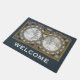 Vintage illustration antique world map featuring both hemispheres by Claude Auguste Berey, 1688. This international old world map features the Eastern and Western Hemispheres, as well as, the north and south poles and all of the continents. Text boxes circle the hemispheres of this atlas, an ornate golden border decorates the edges and a decorative scroll is at the top.