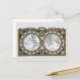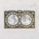 Vintage illustration antique world map featuring both hemispheres by Claude Auguste Berey, 1688. This international old world map features the Eastern and Western Hemispheres, as well as, the north and south poles and all of the continents. Text boxes circle the hemispheres of this atlas, an ornate golden border decorates the edges and a decorative scroll is at the top.