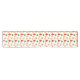 Table Runner in a pattern of assorted antique Christmas tree ornaments, in deep red, dark green, soft gold and pink, against a white background