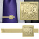 A rich gold finish frames an intricately engraved centerpiece with a striking trompe l’œil effect.