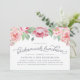 Choose these beautiful bridesmaids luncheon invitations to celebrate your closest confidantes before the big day. Vintage floral design features blush pink watercolor peonies at the top with decorative typography accents and smoky blue gray lettering. Personalize with your desired bridesmaids luncheon invitation wording using the template fields.