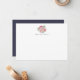 Our chic personalized stationery flat cards feature a bouquet of watercolor peony flowers in soft shades of blush pink and sage green, with your name or choice of personalization beneath in modern sans-serif lettering. Cards reverse to a subtle dotted diamond pattern in rich midnight blue.
