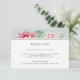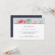 Designed to coordinate with our Antique Peony wedding and event invitations in Blush and Sage, this modern vintage reception card features blush pink watercolor peony flowers peeking out from behind a front panel in white and midnight blue, on a muted pastel sage green background. Add your reception details, including timing, venue and any additional information like valet parking or shuttle service.