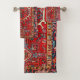 I ordered these towels because I am getting ready to stage my house for sale and wanted some really pretty towels to show off the bathroom. These are an absolutely perfect match for the teal walls and I could not be more pleased. Not only do they look beautiful, they also seem to be very good quality. They are different than any other towels I've had, as the surface fibers are not looped. I love that because I have never liked how most towels have loops that snag and pull no matter how careful you are. I pre-washed them and they came out beautifully. The towels are generously sized and they don't feel flimsy at all. I did not read the description well enough to understand I was paying as much as I was paying for just exactly what was pictured: not a set of two, but a single towel, hand towel and washcloth, so they are way more expensive than I thought (which was a lot, considering). However, I still love them enough that I went ahead and ordered a single additional bath towel so that I would have an actual set, but will need to buy a couple of solid color washcloths. Pricing is weird, because a single wash cloth is priced higher than a large bath towel?? Anyway, if you can afford them, these towels are fantastic. I would never pay this much except to show off a house for sale, but now that I've done it I will love them in my new home as well. Gorgeous! Vibrant Colors and exactly as pictured,..maybe evern better!