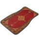 This car floor mat set combines practicality with timeless elegance, featuring a printed design inspired by traditional rugs. The rich red background showcases an intricate geometric pattern with a central diamond-shaped medallion, flanked by symmetrical arrow motifs extending outward. These elements, rooted in traditional weaving symbolism, evoke themes of protection and direction. Perfect for adding a touch of sophistication to your vehicle while keeping it clean and stylish.