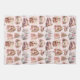 Antique Pink Victorian Christmas Kitchen Hand Towel — This lovely and unique holiday kitchen towel features a delicate seamless pattern design of soft blush pink, ivory, cream, rose and white fussy antique Victorian Era ephemera Christmas themed illustrations from yesteryear, on a faint powder pink background. Graphic depictions include Santa Claus, winter snowscapes, a locomotive train, a church, Christmas presents, a decorated xmas fir tree, a child, a bird, seasonal foliage, festive winter garlands, elaborate frames, and more.