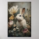 Antique Rabbit Bunny Flower Print, Easter Poster