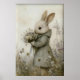 Antique Rabbit Flowers Print, Easter Bunny Poster