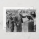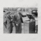 Old 1930s photo of farmer and wife examining antique phonograph at estate auction near Tenstrike, Minnesota. Old cars in the background. FSA photo taken in 1939 by photographer John Vachon.