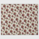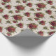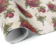 A vintage antique wallpaper design of burgundy red roses and green leaves on a tan suede leather pattern.
