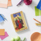 I was super excited when I got my cover in. It is attached by a magnet across the edge. I don’t think it will be very protective but it is very cute. I’m going to keep my iPad in a sleeve and use this face cover while I have it out. It folds to create a tilt for better viewing and to keep the iPad at a slight angle for typing. The colors are bright and it is fun. I’ve really enjoyed it. The personalization looks like amazing. It is the same color as the picture and is the same brightness. Well done! Very nice.